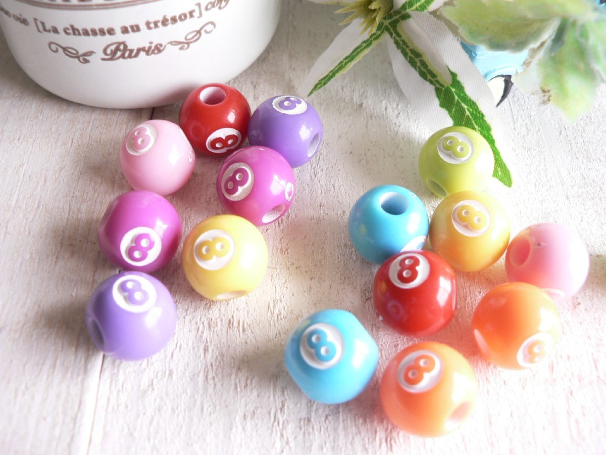 > ビーズ ビリヤード 15個( #3632) 8ボール カラフル 手芸 パーツ ハンドメイド 材料