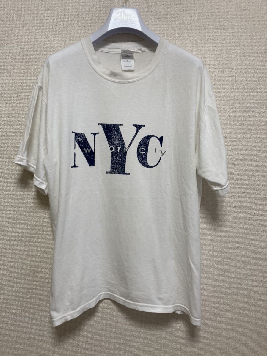 > USA古着 NYC ニューヨークシティ プリントTシャツ プリントロゴGILDAN 半袖Tシャツ アート デザイン 白L