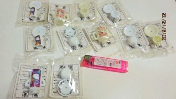 - 再) キティちゃんのシリーズのミニチュアカップ他色々袋入り11個中古品