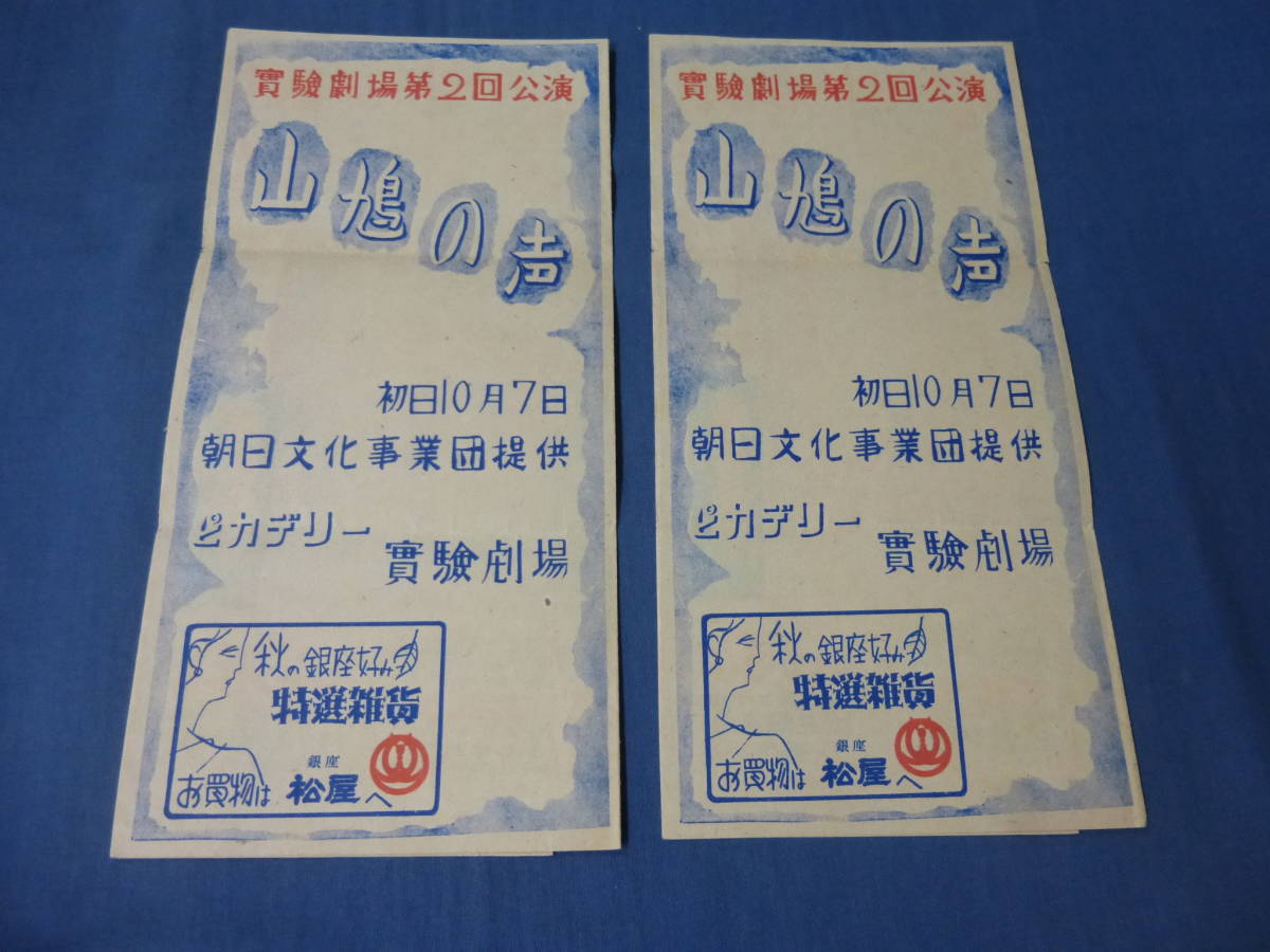 - 古い舞台・演劇チラシ(126)◆実験劇場第2回公演「山鳩の声」同じの2枚 ピカデリー 俳優座 演出・千田是也 轟由起子/北澤彪/南美江