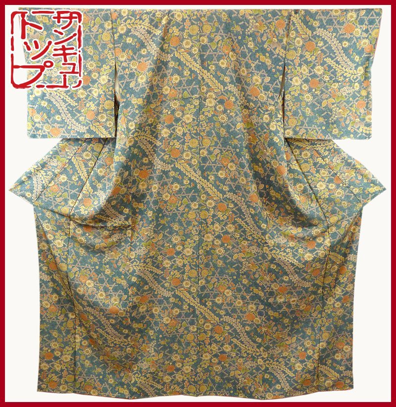 - 【店頭価格15000円の品 在庫処分 大幅値下げ】☆質:39トップ 着物館 673 小紋 辻が花風模様 中古 お稽古や普段着に