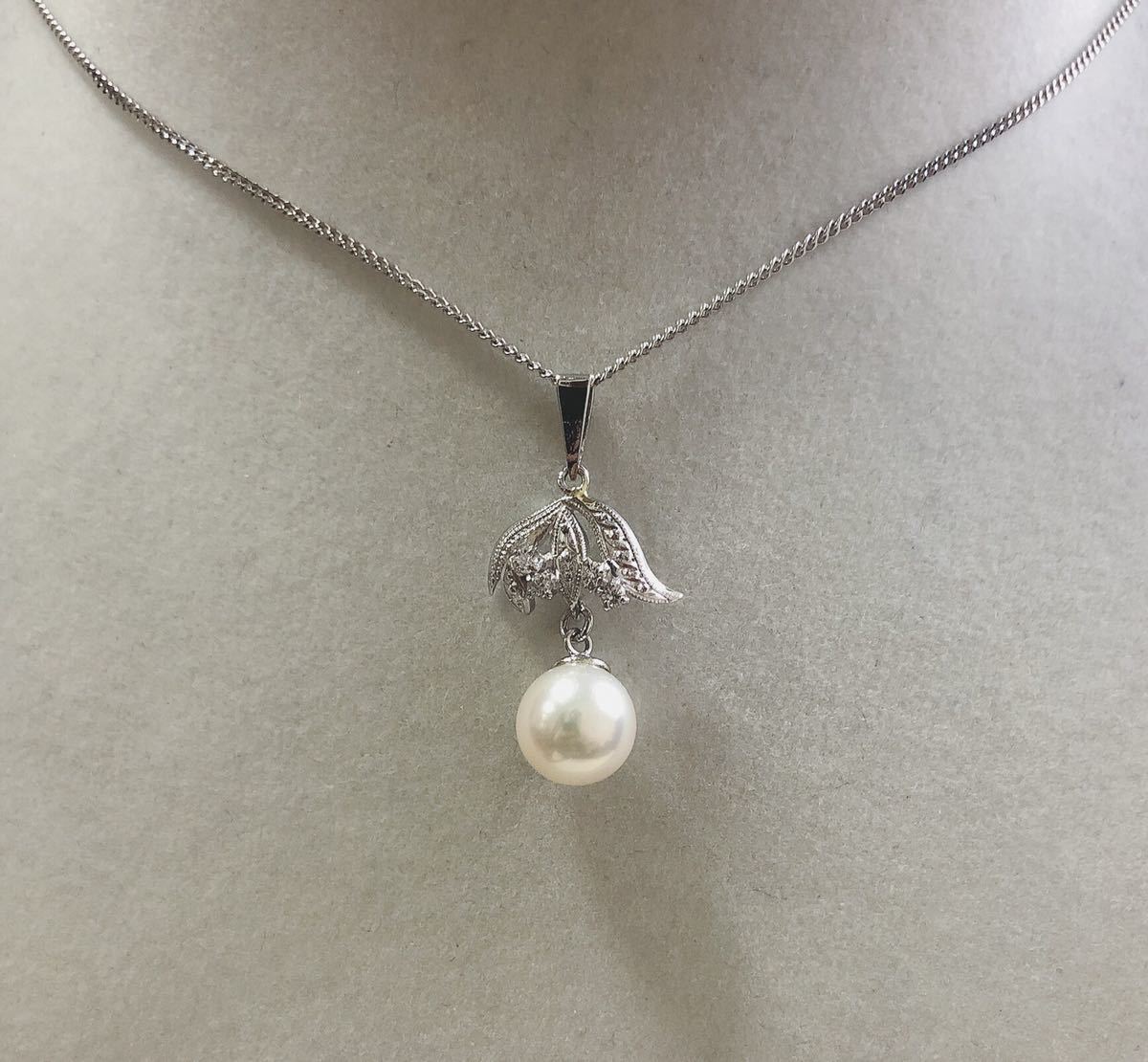 - 【質屋 尾張屋商店 東京】 ☆仕上済☆ Pt900Pt850 パールダイヤモンドレディースネックレス 39cm 0.03ct