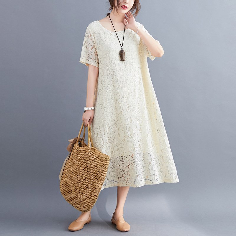 - ZJM1061 *体型カバー*ゆったり大きいサイズ*半袖ロングワンピース 新品夏*総レース上質*カジュアル*結婚式二次会