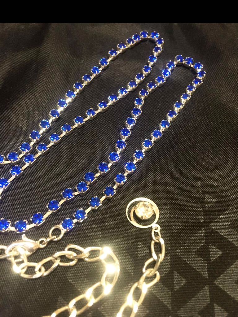 - ★ ラインストーン アクセサリー チェーン ベルト サファイア ブルー アクセ 衣装 コスプレ おしゃれ ベリー ダンス 装飾 華やか 青 パヴェ