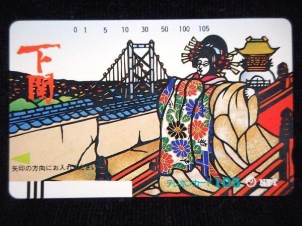 - テレカ 105度 下関 切り絵 T-7003 未使用