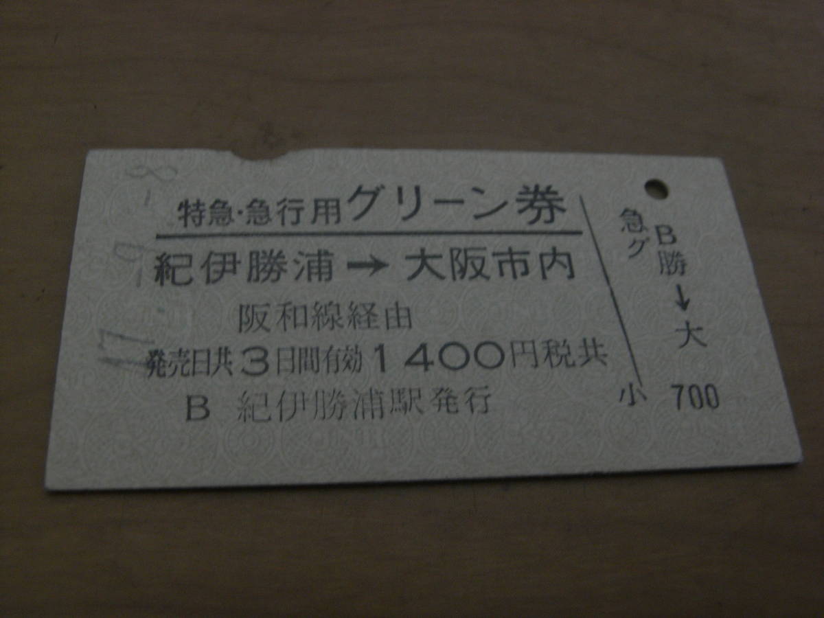 - 特急・急行用グリーン券 紀伊勝浦→大阪市内 昭和47年9月8日発行 紀伊勝浦駅発行
