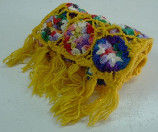 - 在庫処分★ハンドメイド手編み花模様ロング ウール マフラー黄/ネパール製