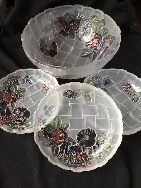 - 昭和 ガラスボール パンチボール デザート フルーツ 小皿 サラダ ガラス細工 ガラス 皿 花 おしゃれ 4個セット レトロ