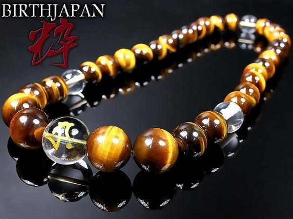 - ヤクザ ヤンキー オラオラ タイガーアイ&大梵字水晶 天然石 数珠 ネックレス06 バン未申
