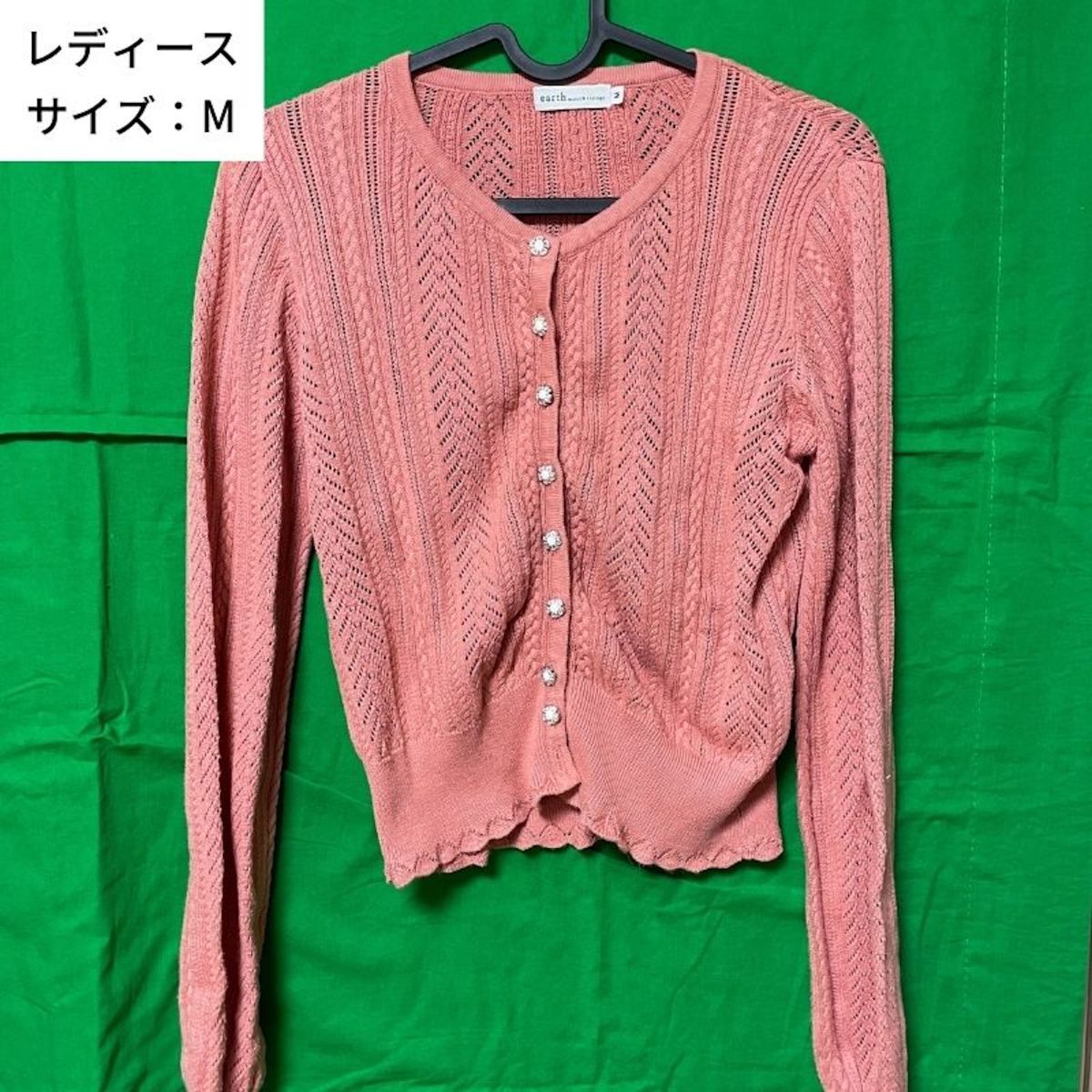 > カーディガン ピンク 丈短め 丸首 earth music&ecology アース Mサイズ 中古 古着 レディース 婦人用 婦人
