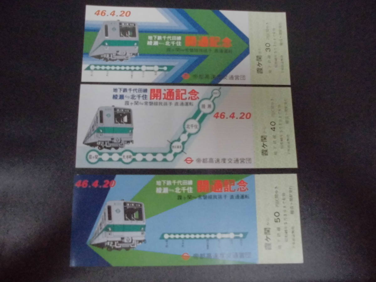 - ★昭和46年4月20日★「千代田線綾瀬・北千住間開通 記念乗車券」3種セット 帝都高速度交通営団 (わかさいも箱)