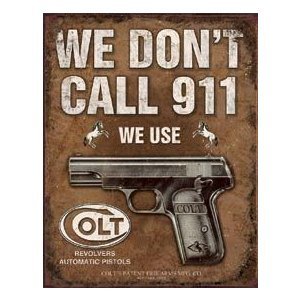 > ブリキ看板 /COLT - We Don't Dial 911 1799 ティンサインプレート アメリカン雑貨 エンボス看板 ドイツ製 インテリア雑貨 ショップ 店舗