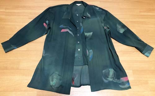 > 送料無料☆春秋◆ロング丈、オーバーブラウス(ジャケット)付き◆2枚仕立て☆グリーン系/深緑【ユーズド】スリットで涼しい!☆おしゃれ