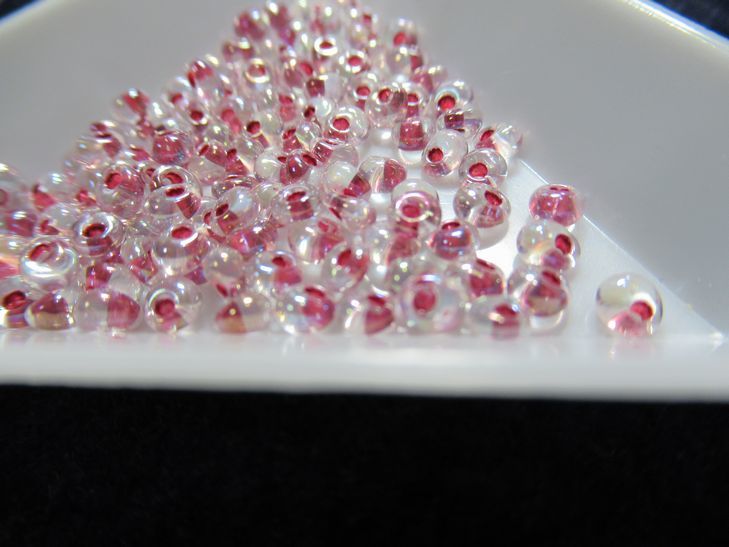 - ★TOHOトーホー★まが玉ビーズ★3mm 5g★771 クリスタルストロベリーラインレインボー★
