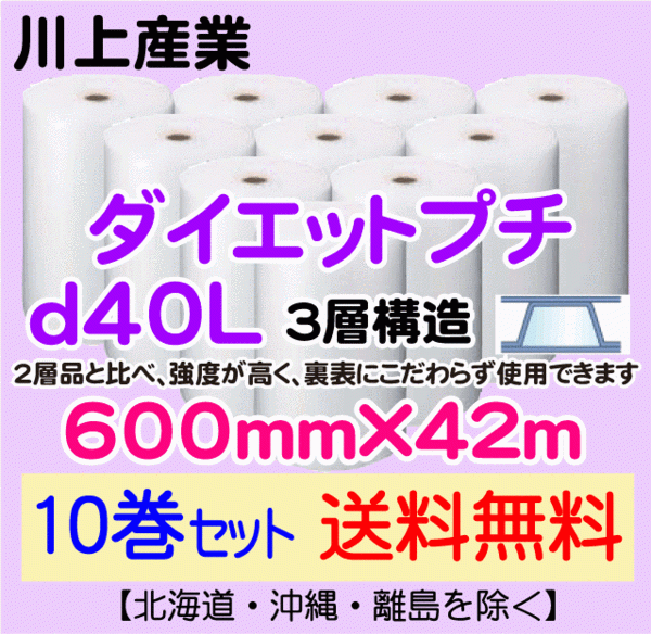 - 【川上産業 直送 10巻 送料無料】d40L 600mm×42m 3層 エアークッション エアパッキン プチプチ エアキャップ 緩衝材