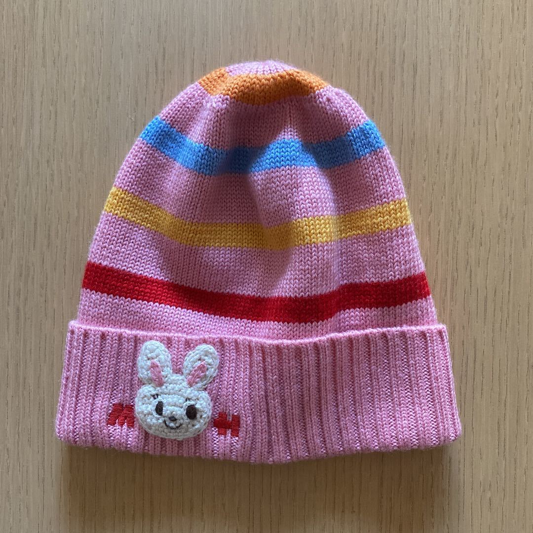 - 【新品未使用】完売モデル mikihouse ミキハウス ウール ニット帽 うさこ編み ピンク