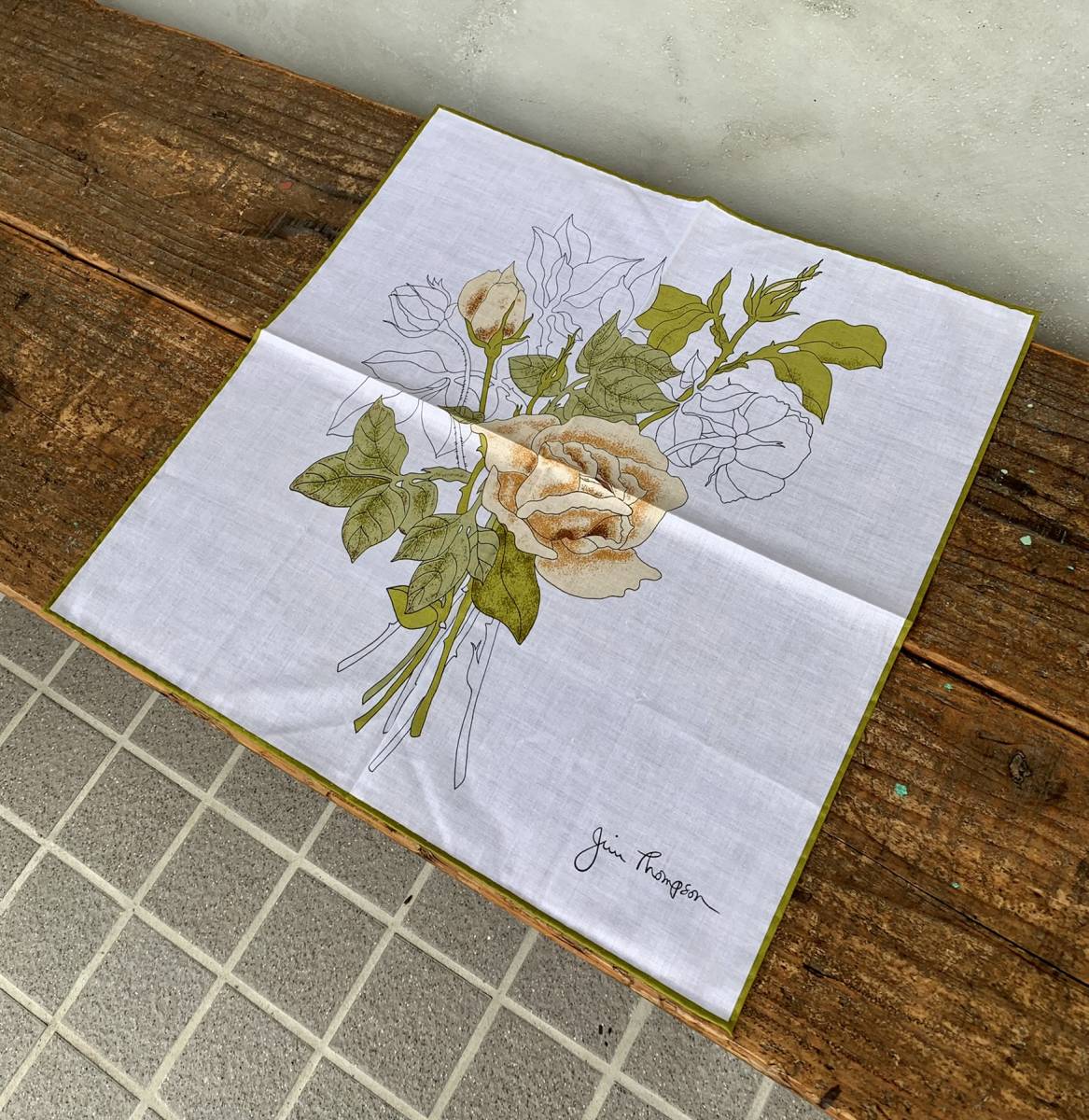 - ★未使用★ヴィンテージ★JIM THOMPSON★ジムトンプソン★ハンカチ★フラワー★花★綿★コットン★40×40★
