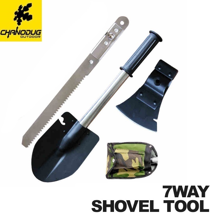 > ★CHANODUG OUTDOOR★7機能万能ツール★シャベル★のこぎり★斧★ハンマー★栓抜き★缶切り★釘抜き★7WAYショベルツール★1