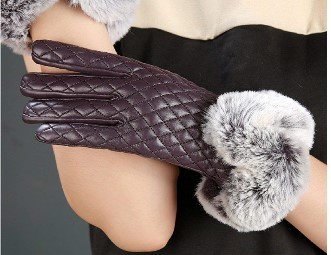 > 新品●豪華な レザーグローブ グレー お出かけ防寒 手袋 ファー付きで 裏起毛で レザーであったかい タッチパネル対応
