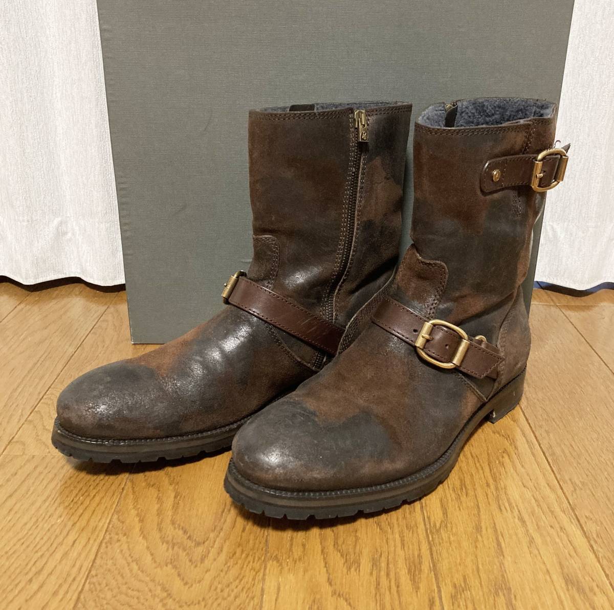 - 美品☆[JIMMY CHOO] 蠍 ヴィンテージ加工 ムートン レザーエンジニアブーツ 43 ブラウン イタリア製 スコーピオン メンズ ジミーチュウ