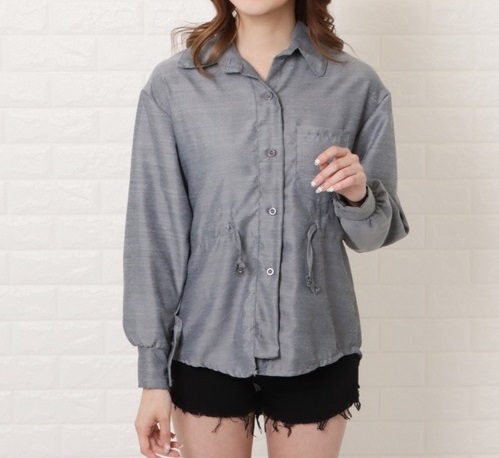 - nana56b-i-.[春 秋 長袖 ゆったり シャツ ミドル丈 ブラウス グレー ウエスト スリム]無地