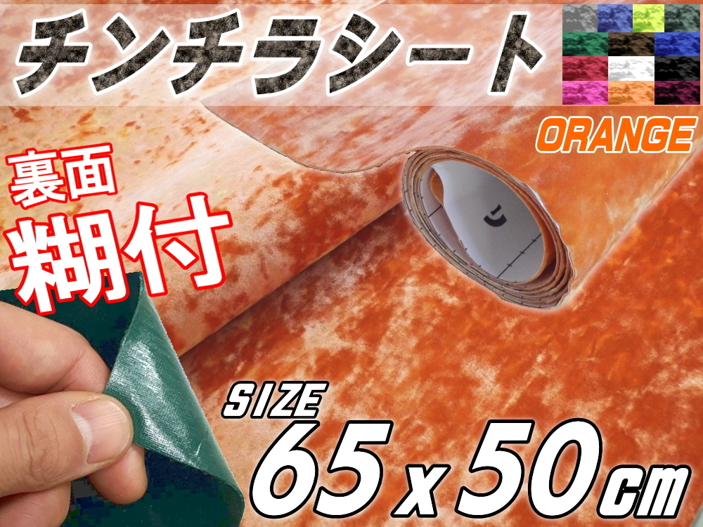 > チンチラ (小) 柿 65×50cm裏面糊付きシート クラッシュベルベット生地ベロア椅子モケット張替トラック内装デコトラ家具DIY補修オレンジ 4