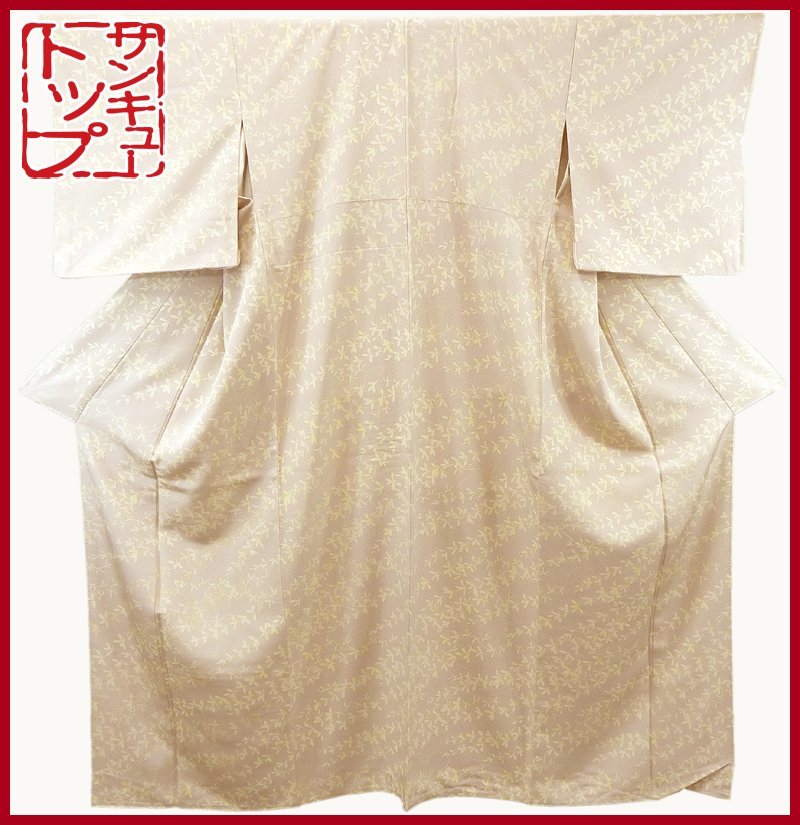 - 【店頭価格12000円の品 在庫処分 大幅値下げ】☆質:39トップ 着物館 693 正絹 濱縮緬 八千代縮緬 小紋 枝葉文様 中古 街着やお稽古事などに