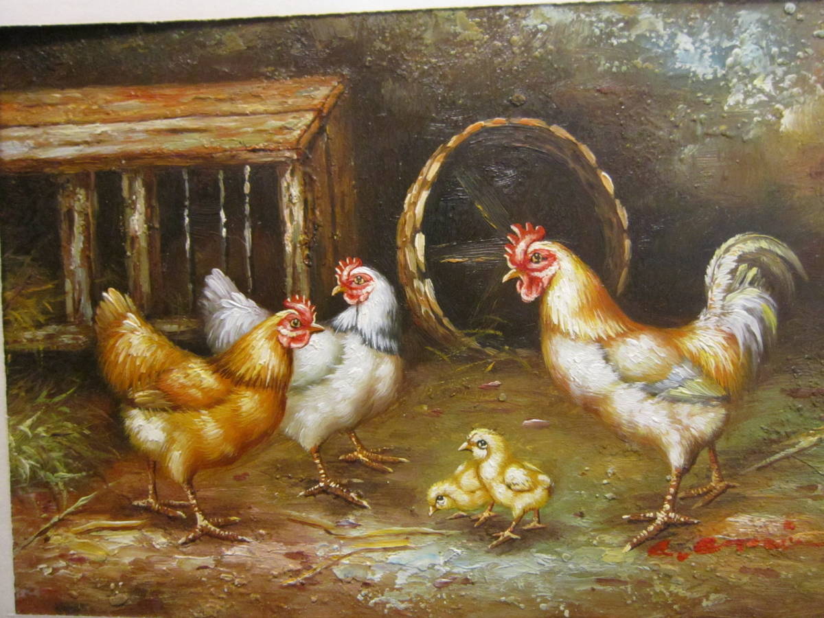 - No209 細密画 肉筆油絵 16,8 x 11.7 cm 鶏 画家不詳 精密画