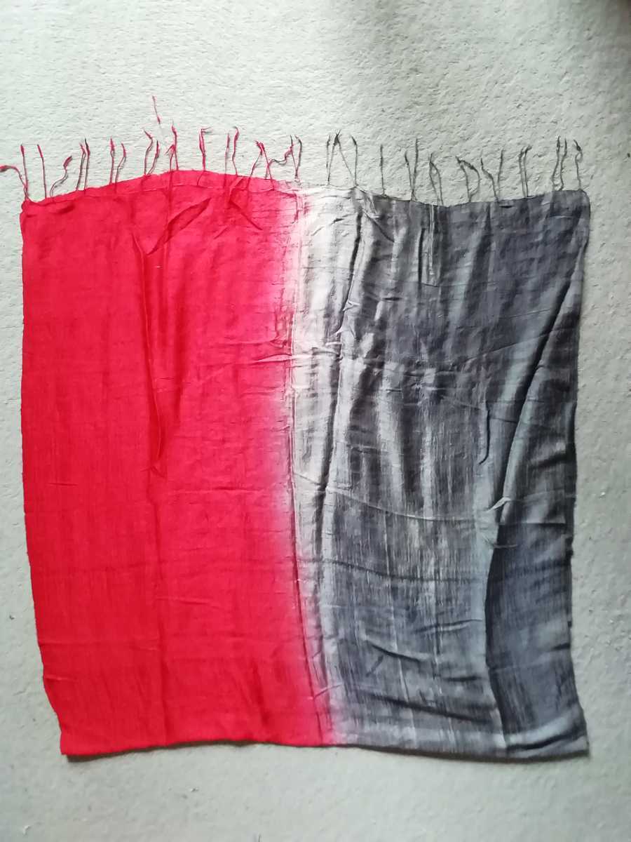 - 「値下げ」美品シルク【スカーフ】赤、グレー◆176×79cm