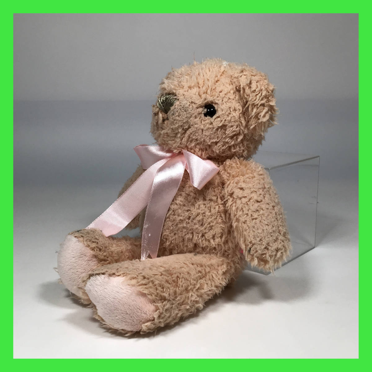 - N-2182☆ くまのぬいぐるみ ピンクのリボン otome 動物 クマ 商品タグ無し