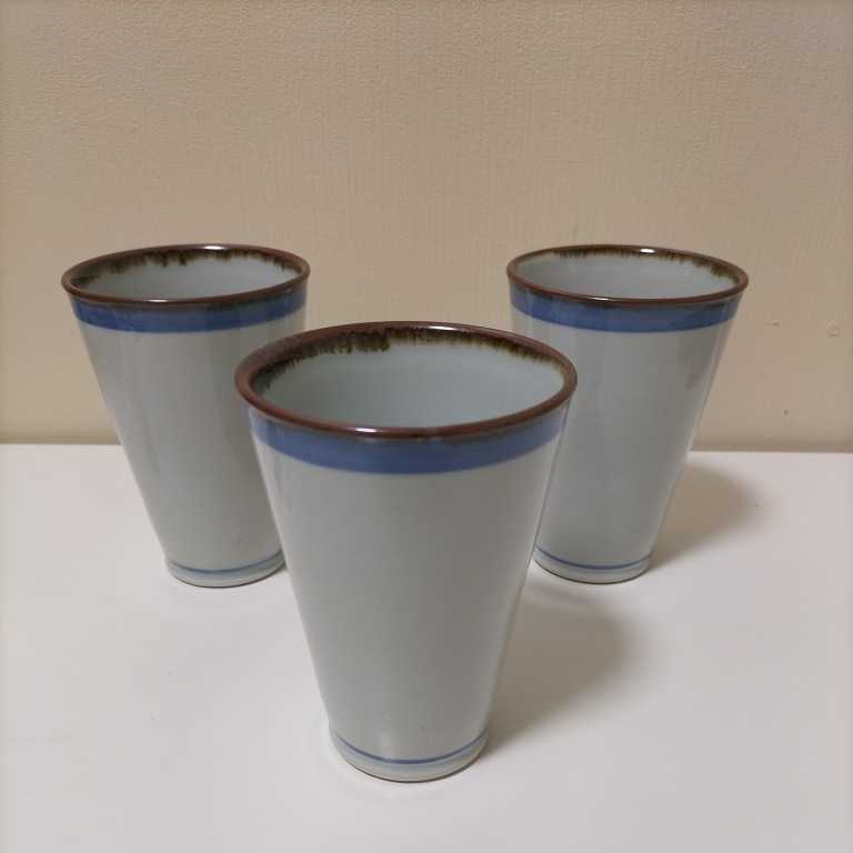 - 砥部焼 登山窯 ビア グラス フリー カップ 3個 セット 和食器 陶器 コレクション 伝統 工芸品 陶芸 ビール 酒 日本