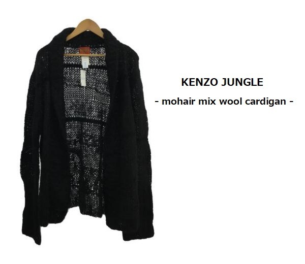 > TK 激レア 入手困難 80s-90s 希少 KENZO JUNGLE モヘア カーディガン ニットジャケット 黒 ブラック系 ケンゾー ジャングル 新品同様