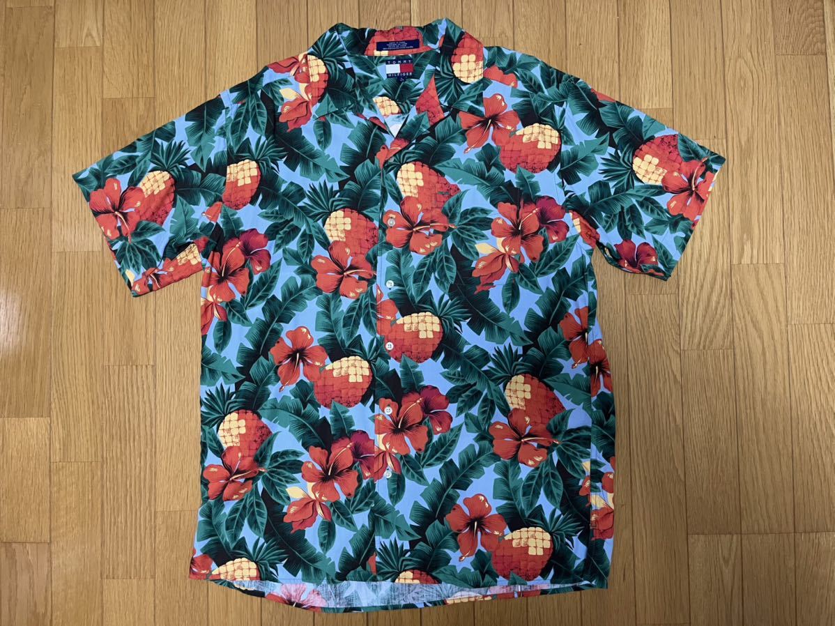 > 送料210円 TOMMY HILFIGER トミーフィルフィガー ハイビスカス パイナップル柄 アロハシャツ L