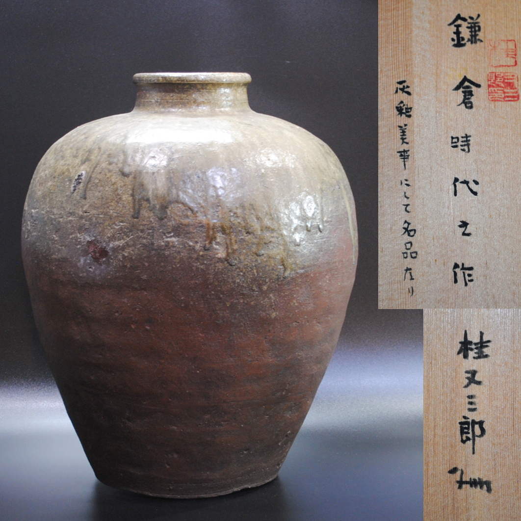 【売切り屋】古丹波 康永壺 桂又三郎極箱 鎌倉時代の作 灰釉美事にして名品なり 箱付