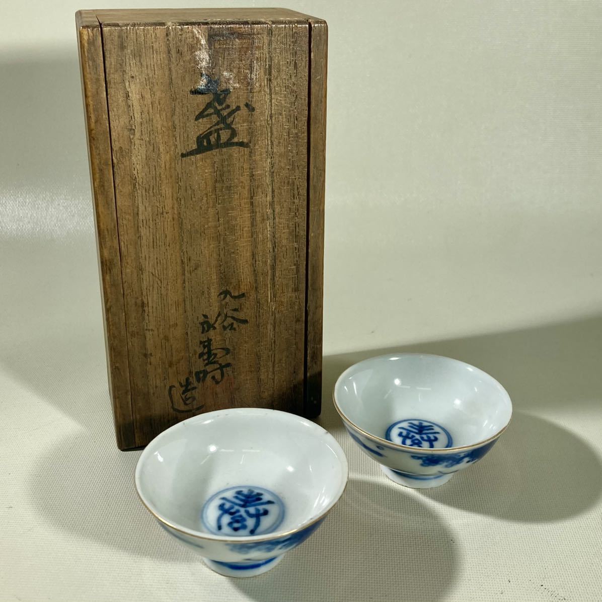 - 九谷焼 永寿造 赤壁図盃 二客 酒器 ぐい呑 共箱 灯
