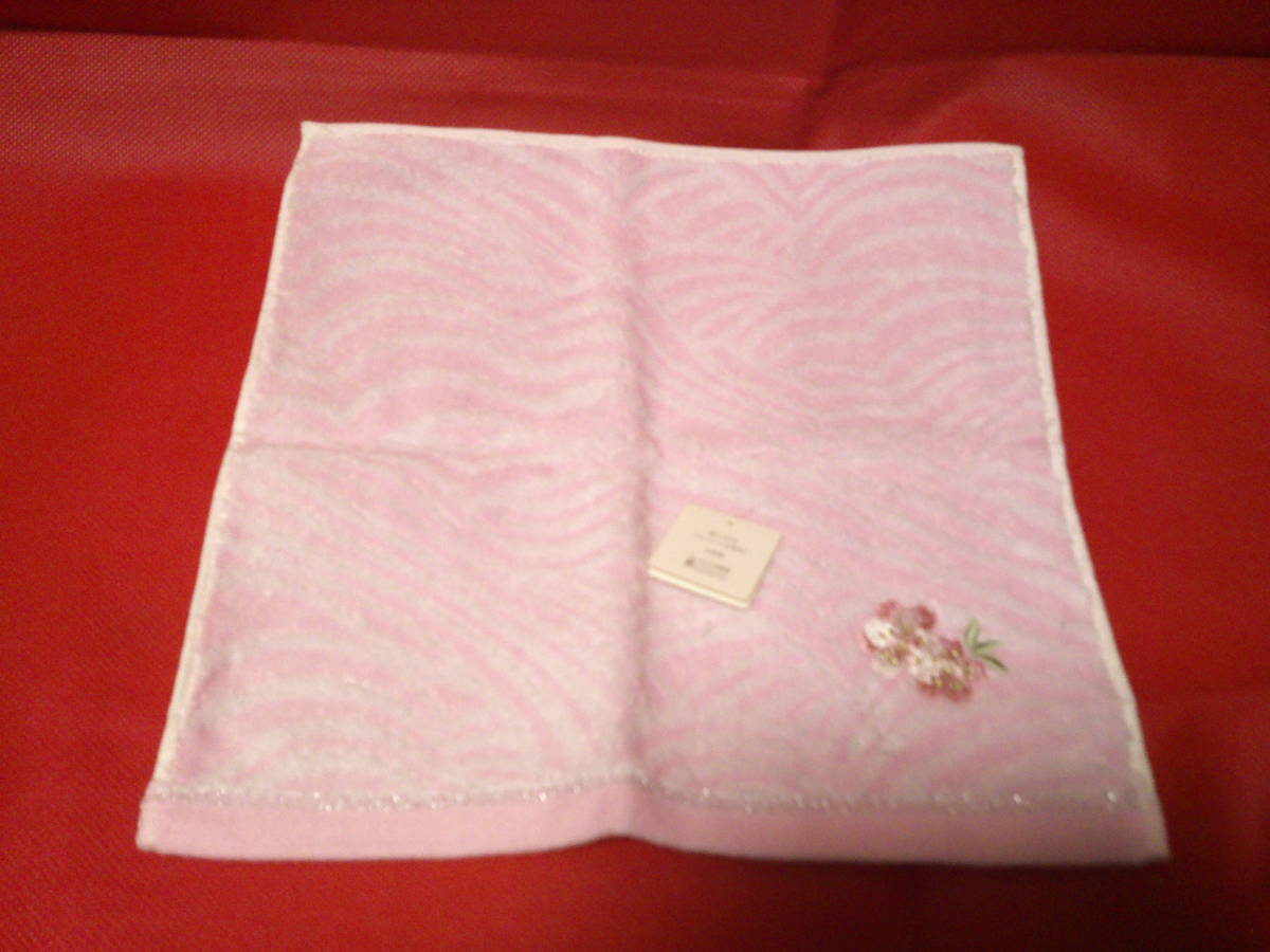 - タグ付き 宇野千代 桜刺繍 スリット糸使用 タオルハンカチ