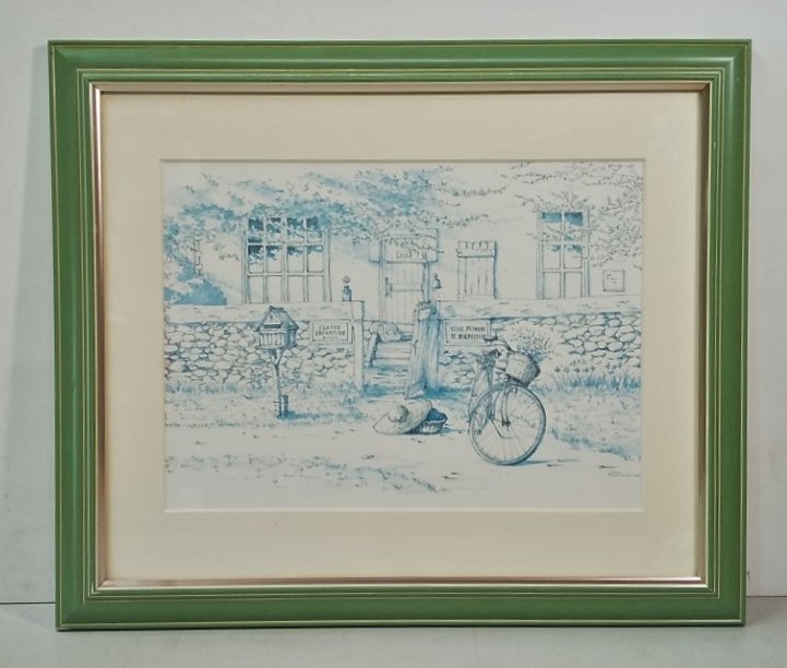- 285★内田新哉 「プロバンスの放課後」 オフセット印刷(複製画) 額入り 額装絵画★状態良★