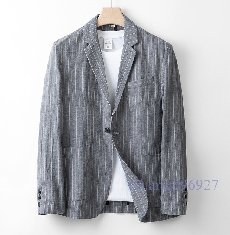 - S079☆新品テーラードジャケット メンズ リネンジャケット ブレザー ストライプ柄 サマージャケット 春秋物 アウター グレー M~3XL