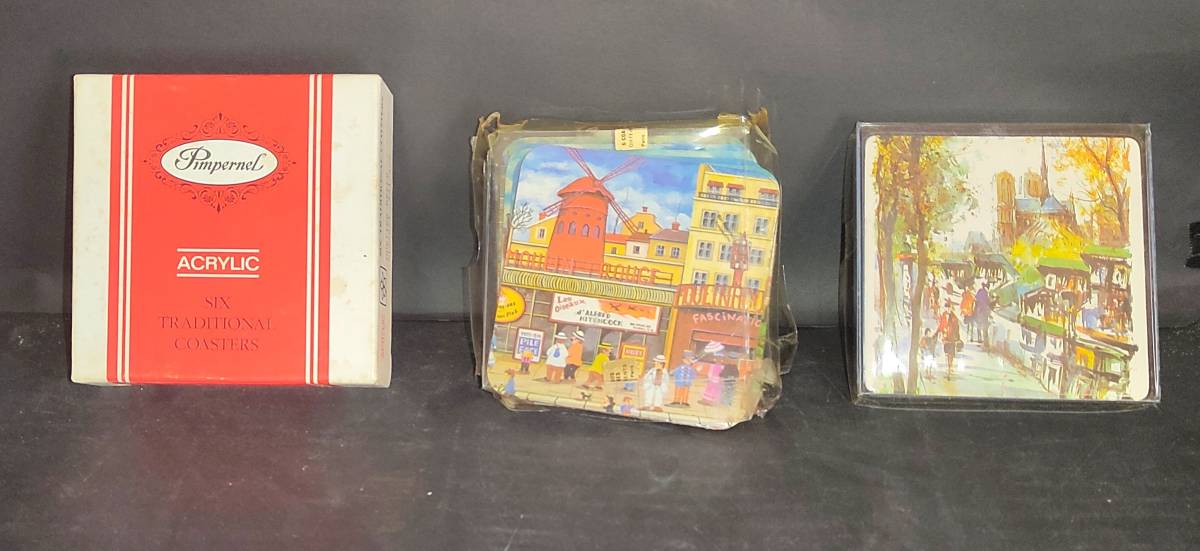 - Pimpernel/ピンパネール・イギリスの乗馬絵 コースター6枚セットとパリ(フランス)の絵コースター11枚 合計17枚(A2C17)