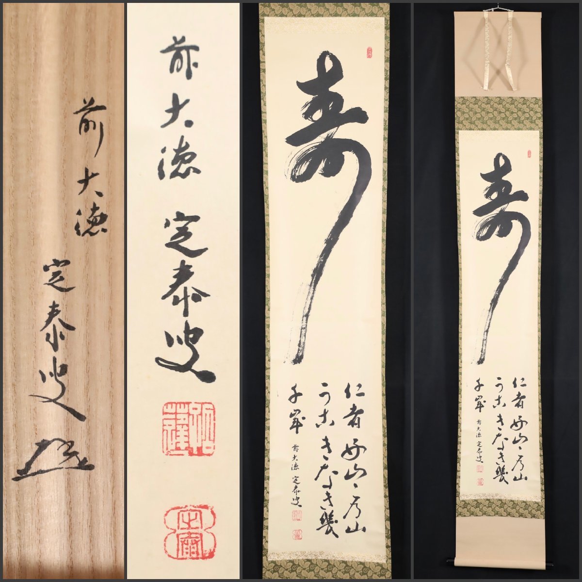 - 【模写】吉】8123 小堀定泰 書「寿」 共箱 臨済宗 大徳寺 孤蓬庵住職 小堀遠州の末裔 滋賀県 茶掛け 茶道具 仏教 掛軸 掛け軸 骨董品