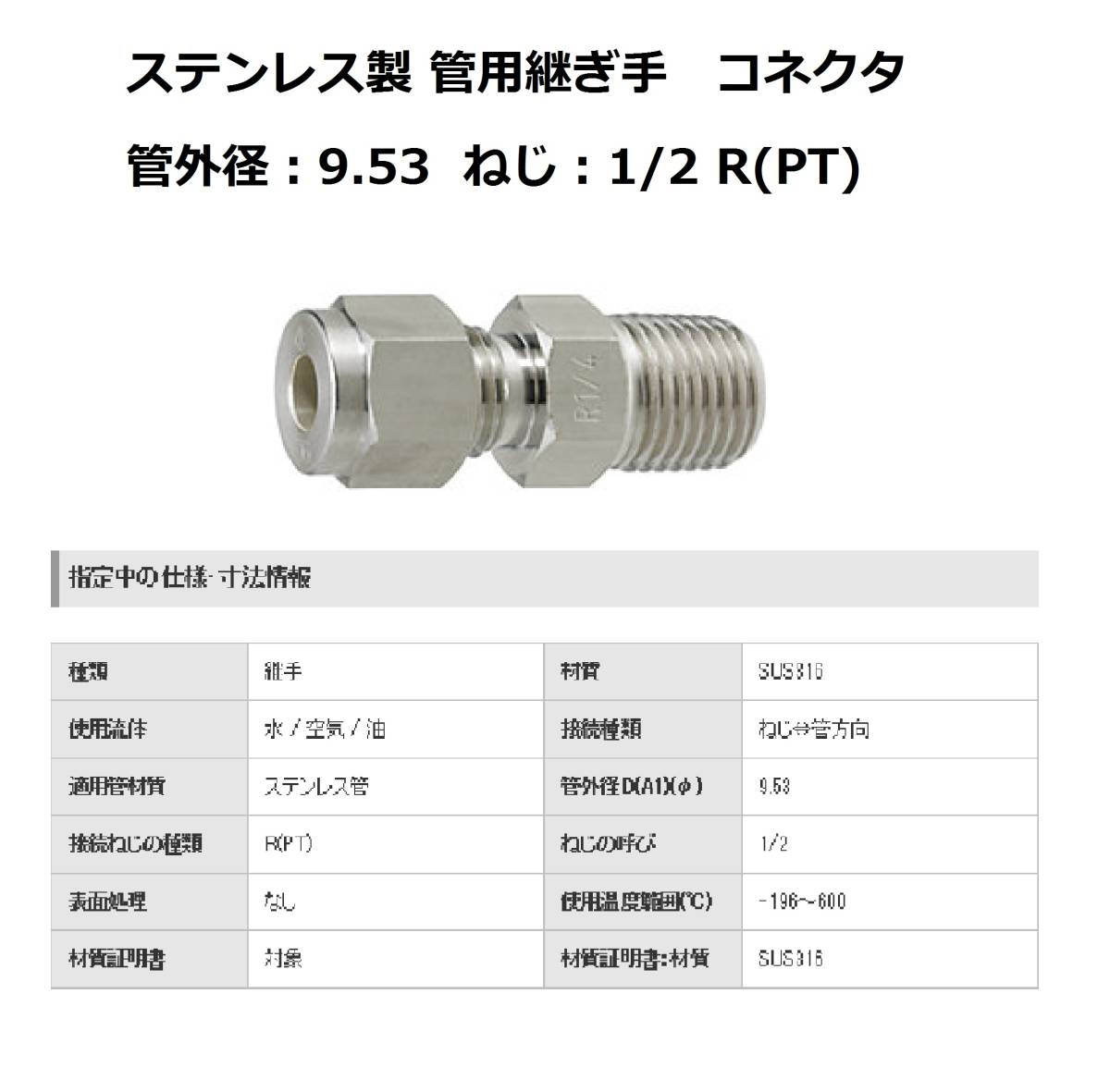 - 送料無料!新品価格:\1,440 を 激安 売切り 送料無料 ステンレス製 管用継ぎ手 コネクタ管径:9.53、ねじ:1/2R(PT) SKTGK9.53-4
