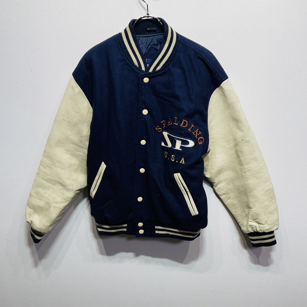 - 【人気】SPALDING/スポルティング スタジャン メンズM レザー 紺ネイビー 90’S ビッグロゴ 激レア K2440