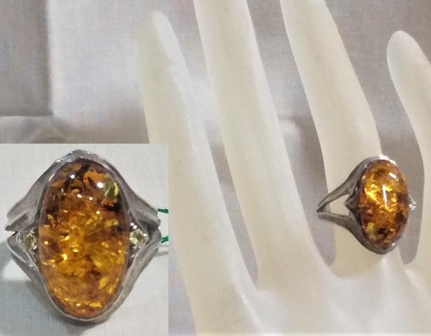 - ★最終80%OFF 琥珀 指輪 シルバー レディース マーブル Φ13 展示品 真贋保証★