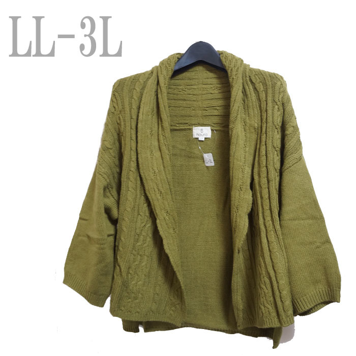 - 新品/ゆるカーディガン/LL-3L/オリーブ/カジュアル/レディース●f8689