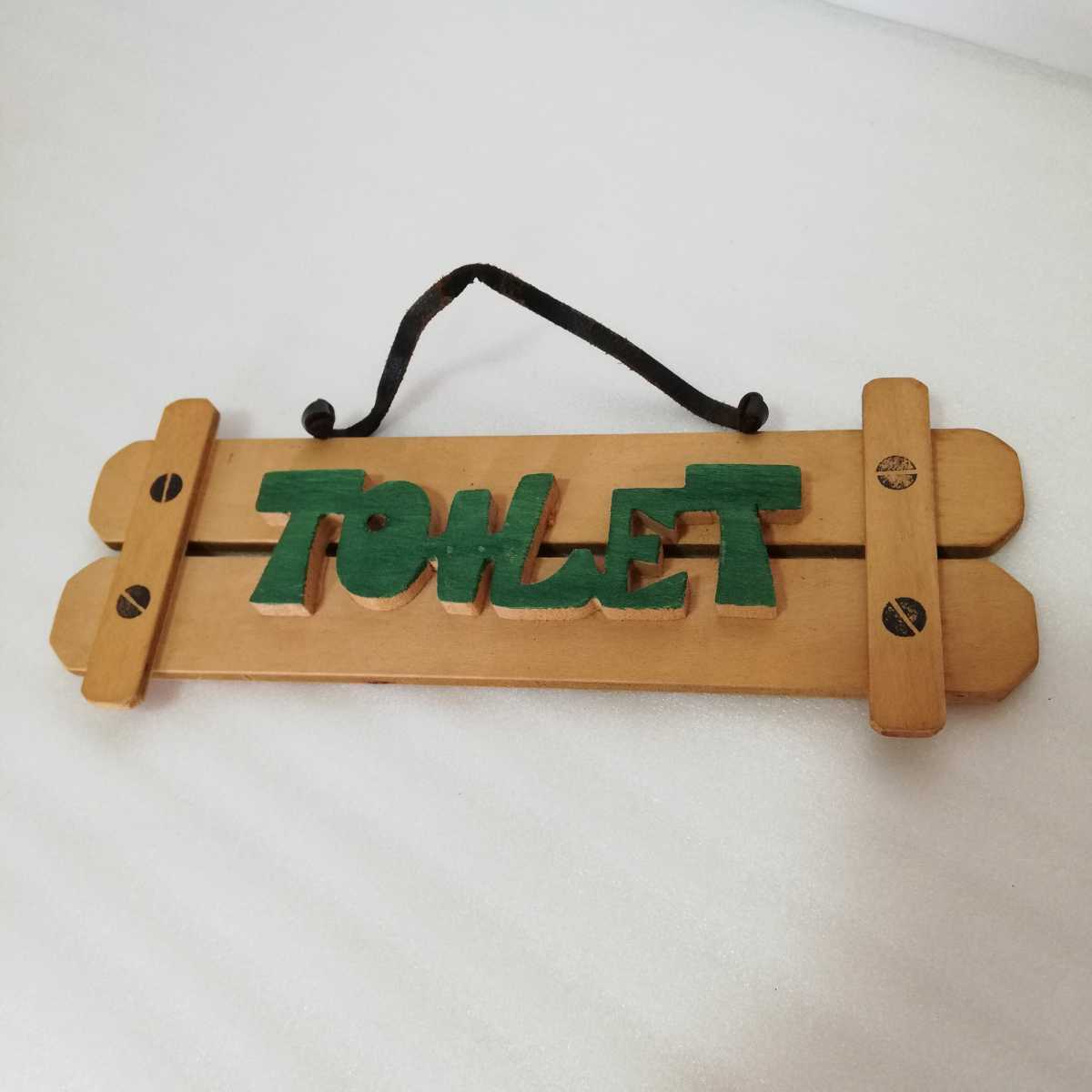 - 1980s 昭和レトロ ビンテージ 木製ドアプレート 掛け看板 掛けプレート 19cm [昭和フォント レトロフォント 飾り 装飾]