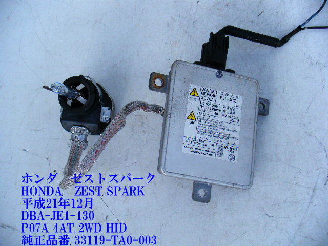 > ◆JE1 ホンダ ゼスト スパーク 左 HIDバラスト バーナー W3T19371 33119-TA0-003 純正 即決 [11777]
