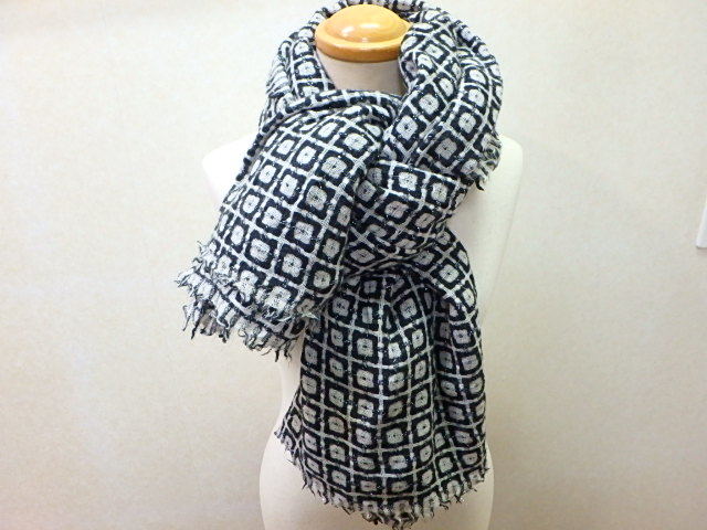 - 60s211k ジェーンカー JANE CARR ストール ショール マフラー 黒×白 ラメ カシミヤ98% レディース (北海道・沖縄・離島は発送不可)