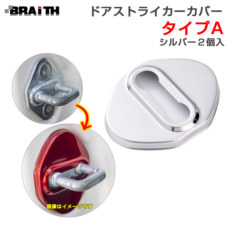 - ドアストライカーカバー シルバー Aタイプ ドア トヨタ・ダイハツ等 2個入 両面テープ取付 アルミ製 BRAiTH BM-633 ht