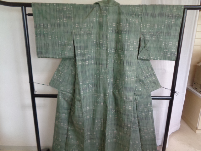 > A298-80 正絹 紬 広衿 絣文 着物 裄66センチ 着丈163センチ 昭和レトロ アンティーク