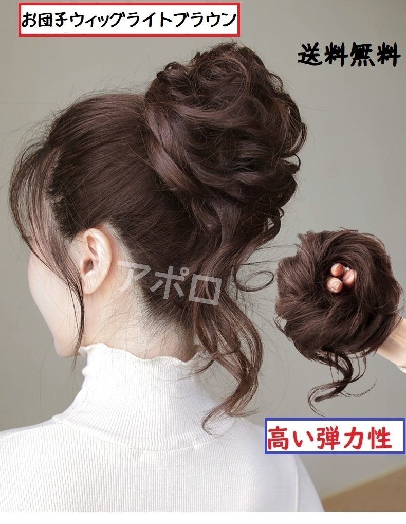 - 送料無料 お団子ウィッグ ライトブラウン つけ毛 ヘアアクセサリー 茶色 No.908 C